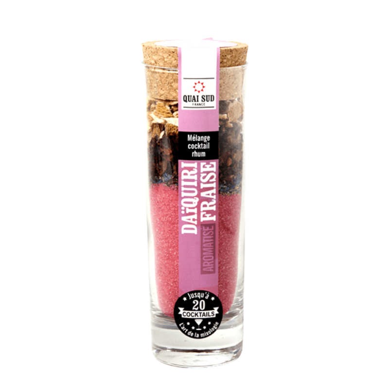 Sucre de canne, écorces de citron, fraises 2,7 %, hibiscus, pétales de bleuet, colorant naturel carmin, arômes naturels goût fraise 0,1 % et goût citron vert.
