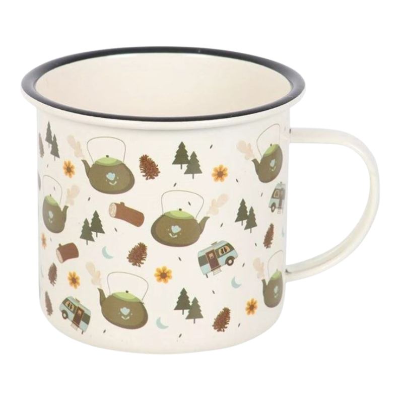 Présente un charmant motif boisé avec des arbres, des bûches, des bouilloires à thé, des caravanes et plus encore ! Capacité de 500 ml. Ne pas mettre au micro-ondes.